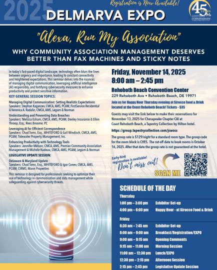 Join Managers, Business Partners, and Homeowners in learning best practices for living and working in a shared community!